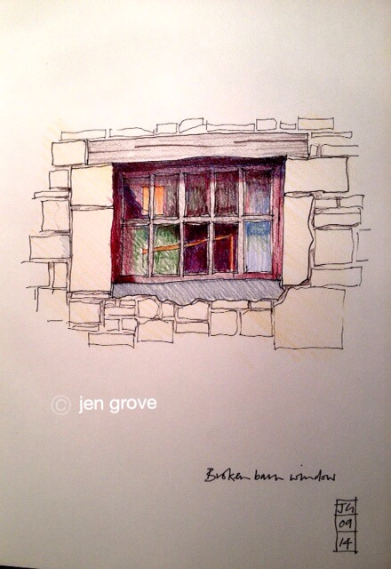 Colour pencil and pen sketch in sketchbook