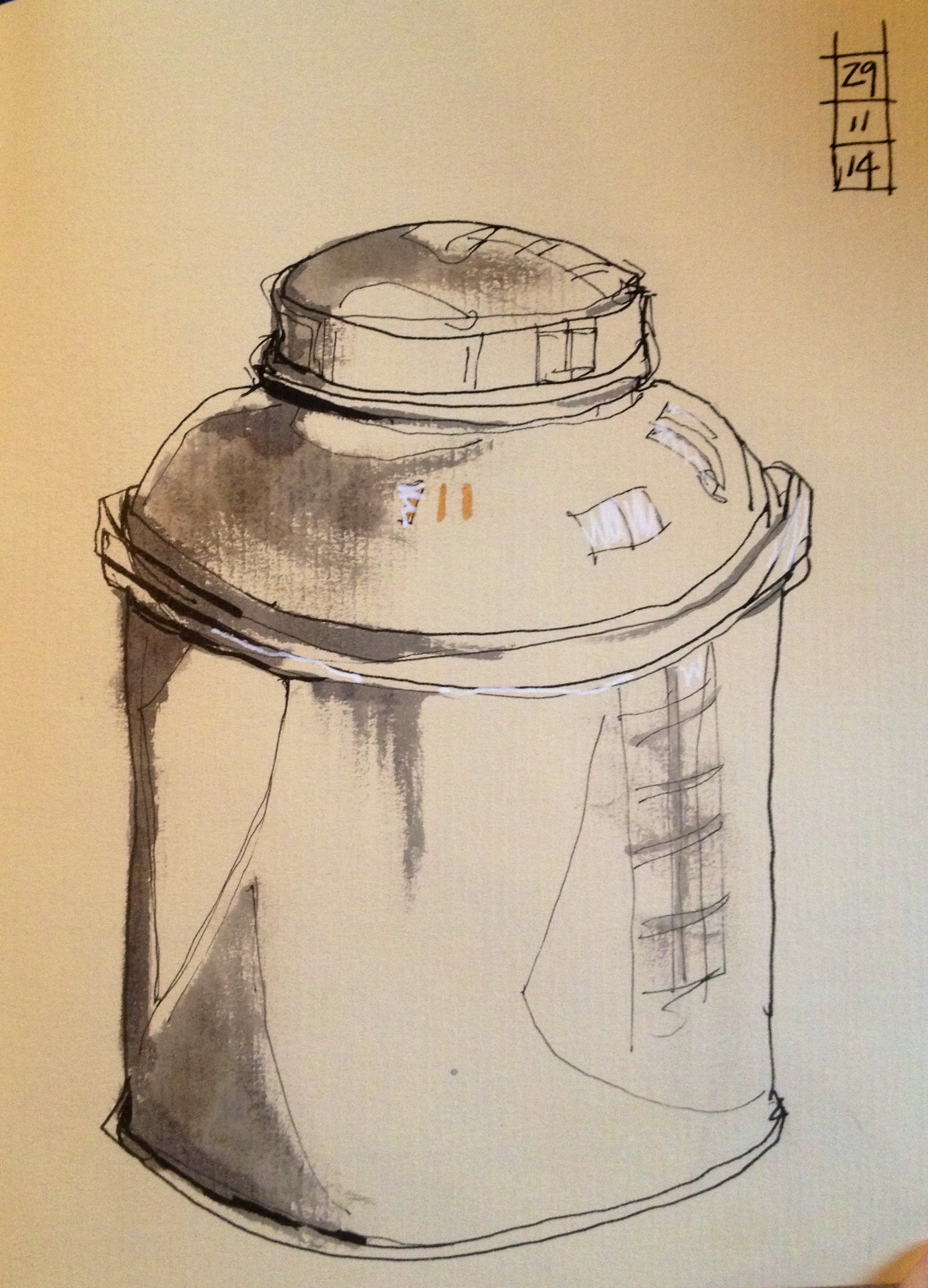 I’ve been having some fun with brush pens. Trying to keep sketches loose and lively. Simple everyday objects in my small Fabriano Classic Artist’s Journal – white and cream ingres paper.
