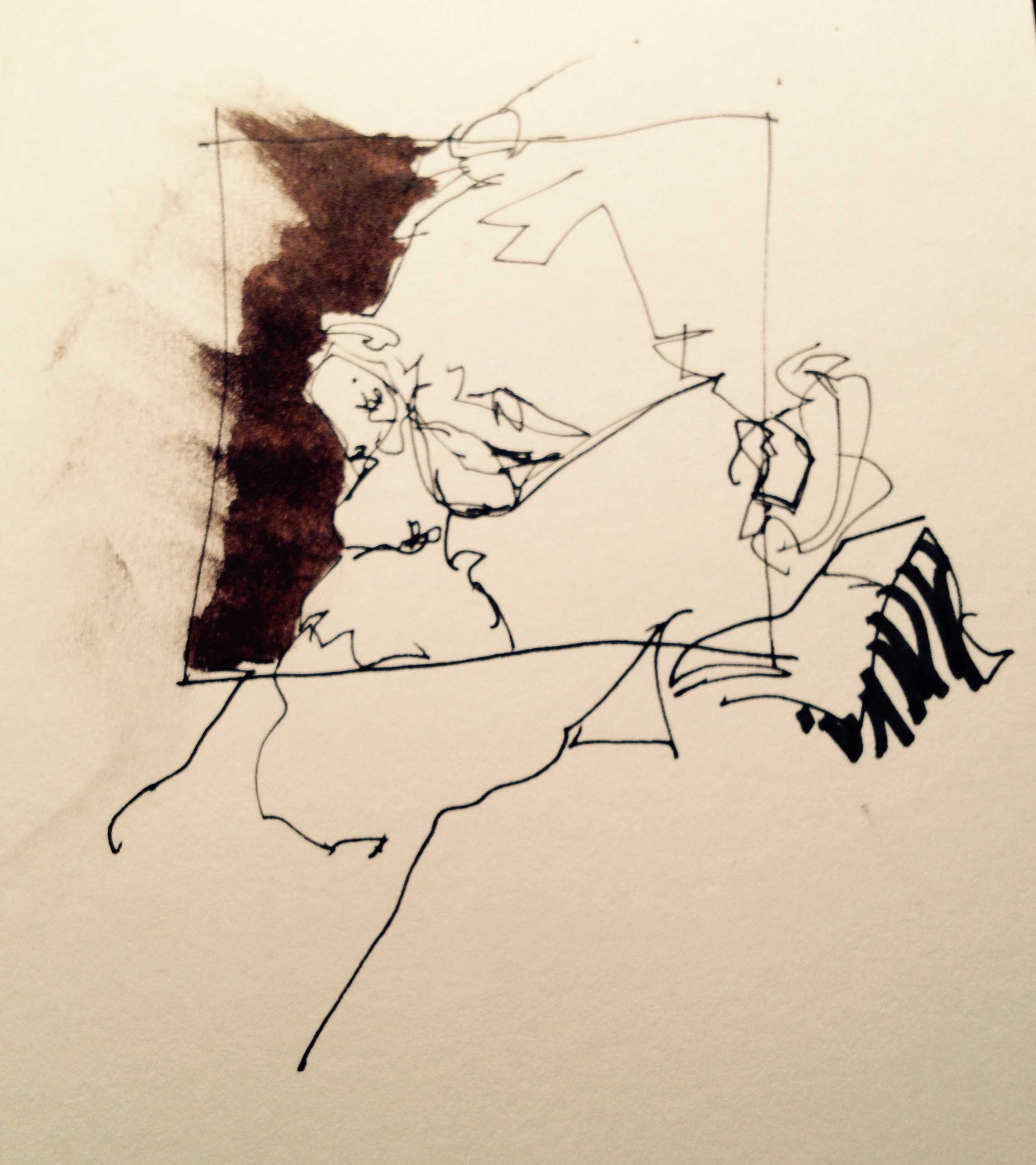 Not the first sketch of the year, but one I quite like of the man taking it quietly after New Years Eve. Trying out the sketchbook paper in Midori Traveler’s Notebook. Have to say it is absolutely superb for pen, brush pens, colour pencil and watercolour. Lovely to work on.